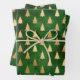 Rustikale Vintage niedliche Weihnachtsbäume Geschenk Wrapping Paper Sheets. Goldfolie Weihnachtsbäume, grüner Hintergrund. Ideal für Weihnachten und die Ferienzeit.