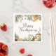 Rustikale Servietten zum Erntedank mit einigen botanischen Arrangements mit wilden Blume, Pilzen, Pinienbäumen Blätter, Herbstlauben und einer lebhaften Biene. Custom Happy Thanksgiving Typografie.