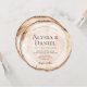 Rustikale Waldhochzeitseinladung mit rundem Holzschnitt-Design und natürlicher Baumring-Hintergrundtextur (*Hintergrund ist auf rundem Papier gedruckt). Perfekt für Wald-, Outdoor-, Scheunen- und Landhochzeiten. Diese flache runde Einladung hat ein rustikales Holzkorn-Aussehen und kann vollständig mit Ihren Namen, Datum und Hochzeitsdetails personalisiert werden.
