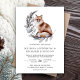 Erleben Sie Ihren Aufenthalt mit dieser eleganten Hochzeitsfeier mit einem wunderschönen Fuchs und rustikalen Blätter mit moderner Typografie. Fügen Sie einfach Ihre Veranstaltungsdetails zu dieser einfach zu bedienenden Vorlage hinzu, um sie zu einer einmaligen Einladung zu machen. Dreh die Karte um ein schönes Blätter auf der Kartenrückseite zu zeigen.
