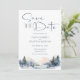 Winterwaldland Hochzeitsdesign mit Aquarellwald und trendiger Typografie. Der Text kann leicht für ein einzigartiges Design für Ihren besonderen Tag personalisiert werden