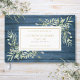 Eine rustikale personalisierte Feier des Lebens, Beerdigung Gästebuch mit Grün auf blauem Holzpaneel Hintergrund. Entwickelt von Thisisnotme©