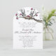 Rustikale Forest Love Bird Hochzeitseinladung mit Mulled Wine Burgundy Rote Blüten perfekt für die Frühjahrshochzeit.