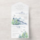 Diese exquisite Hochzeitseinladung zeigt ein lässiges Aquarellbild einer Wald- und Berglandschaft mit geschmackvoll einfachen Details und rustikalem Kalligrafietext. Mit zeitloser, aber zeitgemäßer Anziehungskraft erschließt diese Einladung perfekt das Wesen Ihrer abenteuerlichen Wildnishochzeit.