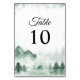 Rustikale Wasserfarbengebirge Pine Winter Wedding Tischnummer