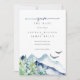 Diese schöne Hochzeit Save the Date-Karte zeigt ein lässiges Aquarellbild einer Wald- und Berglandschaft mit geschmackvoll einfachen Details und rustikalem Kalligrafietext. Die Rückseite ist in einer ruhigen, staubblauen Farbe gehalten. Mit zeitloser, aber zeitgemäßer Anziehungskraft erschließt diese Einladung perfekt das Wesen Ihrer abenteuerlichen Wildnishochzeit.