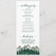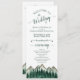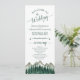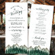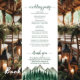 Dieses Hochzeitsprogramm ist rustikal und Outdoorsy, aber trotzdem stilvoll und schön. Es zeichnet sich durch eine Aquarelllandschaft aus zerklüfteten Berggipfeln mit Kiefernbäumen im Vordergrund aus. Die Titel sind in extravaganter, waldgrün gefärbter Schriftzeichen geschrieben, und es gibt Platz für Ihre Zeremonie und Hochzeitsfeier Details, sowie ein kurzes Dankeschön für Ihre Gäste. Ein wunderbarer Weg, um Ihre Freunde und Familie zu Ihrer Hochzeitsfeier zu begrüßen.