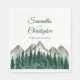 Diese wunderschönen Servietten werden Ihren Empfang, Ihr Probe-Dinner oder andere Hochzeitsveranstaltungen mit Stil und Klasse bereichern. Sie zeichnen sich durch ein rustikales Design mit einer Aquarelllandschaft aus zerklüfteten Berggipfeln mit einem Kiefernwald im Vordergrund aus. Über dem Kunstwerk sind die Namen des Paares und das Hochzeitstag geschrieben in elegantem Waldgrün Schrift geschrieben. Ideal für eine Hochzeit im Freien.