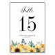 Rustikale Wasserfarbenkürbis und Sonnenblumen Hoch Tischnummer