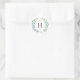 Rustikale Hochzeitsaufkleber mit Ihrem Single Buchstaben Monogramm in einem grünen Kranz bestehend aus Aquarell grün gestrichenen Blätter, über einem weißen Hintergrund. Diese einfachen botanischen Aufkleber machen großartige Umschlag Aufkleber.