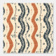 Dieses Kunstwerk zeichnet sich durch ein rustikales, handgezeichnet Muster aus gewellten Linien und einfachen Blumenmotiven aus. Das Design verwendet eine warme, erdige Farbpalette aus Terrakotta und tiefblau vor einem cremefarbenen Hintergrund, die ein Gefühl der natürlichen, Bio Bewegung. Die unregelmäßigen, strukturierten Linien und Formen verleihen dem Muster ein handgefertigtes, handgefertigtes Gefühl, während der rhythmische Wellenfluss einen beruhigenden und dynamischen visuellen Effekt erzeugt. Die verstreuten, blumigen und geometrischen Elemente verleihen der Komposition subtile Details und Charme.