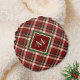 Rustikale Weihnachten Kariert Red Monogram Name Ho Rundes Kissen