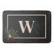 Dieses Design ist einfach, aber macht eine Aussage, mit dem Monogramm Initial in cremeweiß auf einem weichen schwarzen Hintergrund. Ein cremefarbener Rahmen ist mit einem rustikalen Kiefernstrauß, cremefarbenen, weißen und roten Beeren und heiligen Blätter geschmückt. Diese Badematte empfängt Ihre Ferien- und Weihnachtsgäste in einem schönen, schlichten Stil. Erstellt von der einfachen Farmhouse Press.