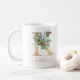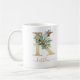 Diese rustikale botanische Kaffeemaschine Tasse mit handgemalten grünen Heiligen mit roten Beeren und Imitaten goldenem Buchstaben K mit einem personalisierten Namen in einer passenden goldenen Hand gezeichnet modernen Drehbuch unterhalb der ursprünglichen. Das ist ein schönes Geschenk für diese Frau in Ihrem Leben zu Weihnachten. Entworfen von Susan Coffey.