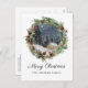 Rustikale Weihnachts Winter Berghütte Urlaub Postkarte. Option zum Entfernen von Text oder zum Bearbeiten von Text.