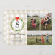 Diese rustikale Weihnachtskarte ist für drei Fotos konzipiert und enthält ein kariertes Büffel in Cremetönen, einen Aquarellkranz und einen kleinen roten Bogen. Die Rückseite der Karte ist ein karierter, cremefarbener und weißer Büffel. © 2021 Tea Olive Co.