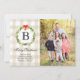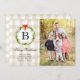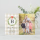 Diese rustikale Weihnachtsfotokarte ist für ein Foto in vertikaler Richtung konzipiert und enthält ein kariertes Büffel in Cremetönen, einen Aquarellkranz und einen kleinen roten Bogen. Die Rückseite der Karte ist ein karierter, cremefarbener und weißer Büffel. © 2021 Tea Olive Co.