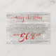 Eine moderne, trendige Weihnachtsbilderin mit einem rustikalen Holzhintergrund und roter Typografie-Schrift "Frohe Weihnachten" mit Text-Overlay und dekorativen Schneeflocken und Bokeh. Discount Card für Werbeaktion, Sonderangebote und Verkauf.