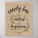 Rustikale Weinreben Hochzeitszeichen für Süßes Bar Poster