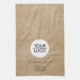 Rustikales Hinzufügen Ihres Logos mit Custom Text Company Werbeaktion Küchentücher. Rustikal-beige Hintergrund. Fügen Sie Ihr Logo in die Vorlage ein und passen Sie den Text, den Firmennamen, die Adresse und die Kontaktinformationen an. Werbeaktion oder Schenkung für Ihre Kunden und Geschäftspartner.