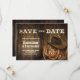 Benachrichtigen Sie Ihre Freunde und Lieben über Ihre bevorstehende Hochzeit mit dieser rustikalen Holz Western Hochzeit rett-the-date-Karte.