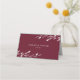 Diese reizende rustikale Hochzeitsfeier-Platzkarte besticht durch einen klassischen, weißen Hintergrund mit bordeauxfarbenen Wildblumen und eleganter Typografie. Das Gegenteil ist auf der Rückseite mit bordeauxrotem Hintergrund mit weißen Wildblumen und Typografie zu finden. Passen Sie es mit Ihren Namen und Hochzeitsdatum auf der Rückseite an. Es ist das perfekte Design für eine rustikale, elegante Hochzeit und koordiniert mit unserer rustikalen Wildblume-Kollektion... Weitere Informationen finden Sie in der Designsammlung.
