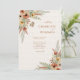 Schöne rustikale Hochzeitseinladung mit weißem Hintergrund mit einer Eckanordnung von Aquarellfarben in warmen Herbsttönen und einem zarten Schmetterling für ein romantisches botanisches Design.