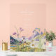 Eine wunderschöne Aquarell-Wildblume und ein Hochzeitsdesign. Ein einzigartiges Design, das die botanischen Aquarelltöne der Wildblume und eine Aquarelllandschaft im Hintergrund verwendet. Modernes, wildromantisches Design mit Seenbergen und Flüssen. Ein elegantes Hochzeitsempfang Banner Design mit modernen Elementen. Auch die passenden Hochzeitseinladungen und andere Schreibwaren sind verfügbar.