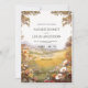 Eine goldene Wiese gerahmt mit sanft bemalten Wildblumen und grünen Zweigen Set eine romantische Landschaft, mit einer Fernsicht auf die Berge und einem klaren Zentrum für Ihre Namen und Details. Dieses Aquarelldesign fühlt sich für Paare, die ein Fest im Freien planen, von einer Scheunenzeremonie bis hin zu einem Empfang im Garten, natürlich an. Personalisieren Sie die Formulierung in Minuten, wählen Sie Ihr Papier und Form, und erstellen Sie eine Einladung, die sich wie Sonnenuntergang in einem Feld fühlt, nur für Sie beide.