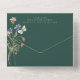 Dieses Design zeichnet sich durch eine weiche Wildblume rund um ein Cremeoval auf einem smaragdgrünen Hintergrund aus. Personalisierte All-In-One-Einladungen sind eine einzigartige Kombination aus einer schön gedruckten, maßgeschneiderten Einladung und einer leicht zu abreißenden perforierten UAWG-Postkarte. Und sie sind so einfach zu bedienen! Man falte einfach, dann Siegel die Rückklappe mit den drei beiliegenden Klarkleben, und Post. Und wenn Ihre Gäste Ihre persönliche Einladung erhalten, reißen sie einfach die perforierte RSVP Karte ab und lassen sie in der Mail an Sie zurück!