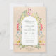 Feine Wildblumen in hellen und hellen Aquarellen sind rund um den zentralen Bogen der Einladung angeordnet. Kalligraphie und moderner Sans Serif Schriftart verbinden sich in einem modernen, schlichten Look, in Harmonie mit den süßen Wildblumen. Grünfarbene Schriftart verstärken das wilde und natürliche Gefühl. Auf antikem Papierboden platziert. Passen Sie die Schriftart an, wenn Sie möchten, aber um die Swashes auf der Kalligrafie zu behalten, behielt Sie die rechteckigen Symbole. Die Farbe der Tinte für die Schrift kann im Designwerkzeug geändert werden.