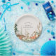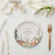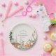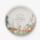 Waldthemen-Babyparty-Papierplatten mit rustikalem Winterwald- und Tierdesign mit personalisiertem Namen und Datum.
