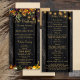 Schöne rostige Orange- und dunkelburgundische Herbstkulisse Blume und Kürbisrahmen mit Streichern goldener Tinkellichter über einem dunkelbraunen Stallholz Hintergrund Hochzeitsfeierlichkeiten Programm Vorlage. +++++++++++++++++++++++ + Personalisieren Sie es mit Ihren Daten! ++++++++++++ Geeignet für rustikale Landschaft Vintager schick Sommergarten Herbst im Garten oder Bauernhochzeiten.