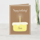 Auf dieser rustikalen Geburtstagskarte befindet sich ein Zitronenkuchen (bzw. ein generischer gelber Kuchen) mit einem Zuckerguss aus feinem Creme, der mit einem hellen, gelb-weiß gestreiften Geburtstagskandal überzogen ist, der auf der Seite des Kuchens mit dem Namen des Geburtstags versehen ist. Über dem Geburtstagskuchen steht "Glücklicher Geburtstag!" oder Ihren benutzerdefinierten Text. Sie können die Geburtstagsnachricht auf der Innenseite der Karte sowie alle Schriftart und Farben anpassen.