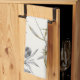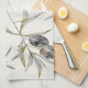 Ein schönes, modernes Küchentuch mit handgemalten Olivenzweigen in Aquarellfarbe mit antiken Goldakzenten