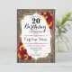 Rustikaler 20. Geburtstag - Rose Sonnenblumen Holz Einladung
