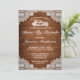 Abschluss fahren durch feierliche Parade Einladungskarte. Rustikaler Stil mit braunen Holzplanken und weißer Spitzendekoration. In unserem Shop sind weitere Artikel in diesem Stil erhältlich. Sie können das Design weiter bearbeiten, die Hintergrundfarbe ändern, Schriftart hinzufügen und durch Klicken auf "Diese Vorlage personalisieren" und dann auf "Weitere Einstellungen vornehmen" den Link "Weitere Einstellungen vornehmen" anklicken.
