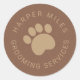 Rustikaler Aufkleber mit brauner Hundepfe auf braunem Papierbild und personalisiertem Text. Bitte beachten Sie, dass Änderungen im Text den Radius beeinflussen können, gehen Sie weiter und nehmen Sie die notwendigen Änderungen vor. Geeignet für kleine Betriebe, Hundezüchter, Tierarzt, Hundeschuhler, Hundeschuhwanderer, Hundeschirr.