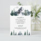 Eleganter Wald Thema Hochzeitskarte mit schönen Bergen und Kiefern auf einem weißen Hintergrund.