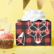 Rustikales Verpackungspapier mit modernem, weißem, geometrischem Fuchsmuster. Der Hintergrund ist schwarzer Büffel-Karo kariert, aber die rote Farbe kann geändert werden. In dieser Urlaubssaison wackeln Sie es in kühner, rustikaler Wildnis! Stell dich zwischen diesem Haufen Geschenke heraus!