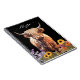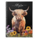 Niedliche mit Augen Highland Kuh stehend in einem Blumengarten mit schwarzem Hintergrund.