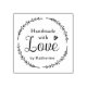 Maßgeschneiderte Handmade mit Liebe Briefmarke für Handwerker, Heimwerker und Produkte mit Ihrem personalisierten Markennamen mit rustikalem botanischem Kranz- und Handschriftendesign.