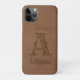 Dieses rustikale Handy Gehäuse für Männer verfügt über einen braunen Lederhintergrund mit einem individuellen Monogramm und Namen, um sich in brauner Typografie zu personalisieren.