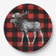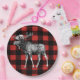 Rustikaler und mutiger Hintergrundpapier-Teller des Karos des roten und schwarzen Büffels karierter. Er kennzeichnen auch eine Schwarzweiss-Elchillustration. Dieser Teller ist für Babyduschen groß!