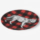 Rustikaler und mutiger Hintergrundpapier-Teller des Karos des roten und schwarzen Büffels karierter. Er kennzeichnen auch eine Schwarzweiss-Wolfillustration. Dieser Teller ist für Babyduschen groß!