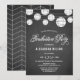 Eine whimsical Graduierungsparty Einladung mit weißen Laternen und elegantem Drehbuch auf Imitat Chalkboard Hintergrund. Diese Einladung ist perfekt für Outdoor-Events.