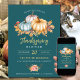 Rustikale Erntedank-Einladungen mit Aquarellfarben Herbstblumenkürbis Kunst auf aquamarinem Hintergrund.