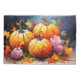 Goldenes rustikales Kürbisgemälde umgeben von pulsierenden Herbstblättern.