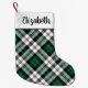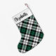 Weihnachts-Strumpf bietet ein modernes personalisiertes Monogramm-Design mit einer klassisch grün-weiß-schwarzen Uhr Schottischen Tartan karierten gemusterten Hintergrund. Personalisieren Sie den benutzerdefinierten Skripttext mit jedem Familiennamen. Enthält das gleiche Design auf beiden Seiten des Strumpfs.