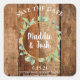 Rustikaler Grünkranz auf Barnholz Save the Date Quadratischer Aufkleber